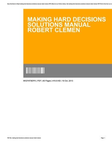 Read Making Hard Decisions Solutions Manual Robert mobipocket Gutenberg
